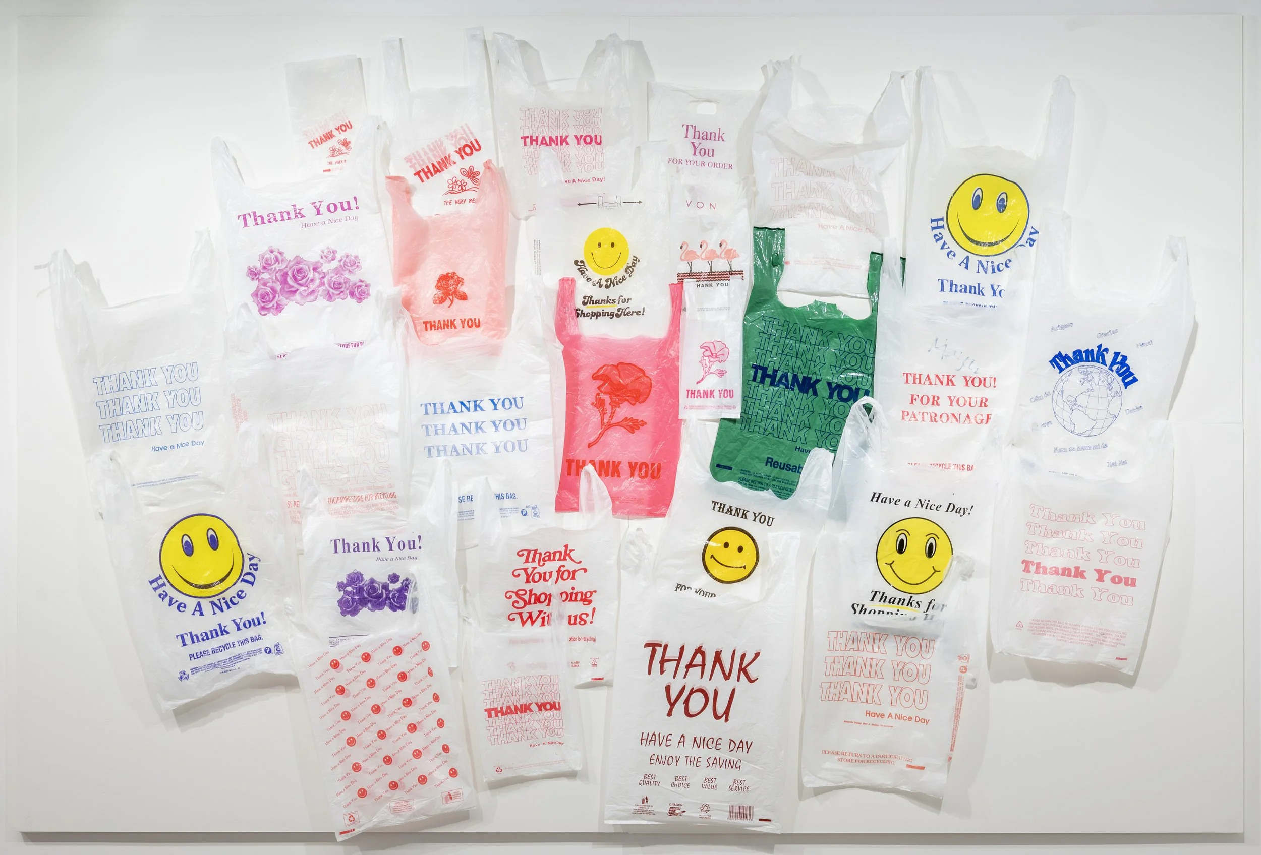In 2020 Katrina Cobain began The Plastic Bag Museum, an online performative museum highlighting the social and design history of carrier bags, while exploring plastic’s material qualities and the existential threat that they present. This artwork led to correspondence with collectors all over the globe, and an ever expanding collection of bags and related ephemera, while uncovering the meaning we place on objects, even if they are deemed to be trash.